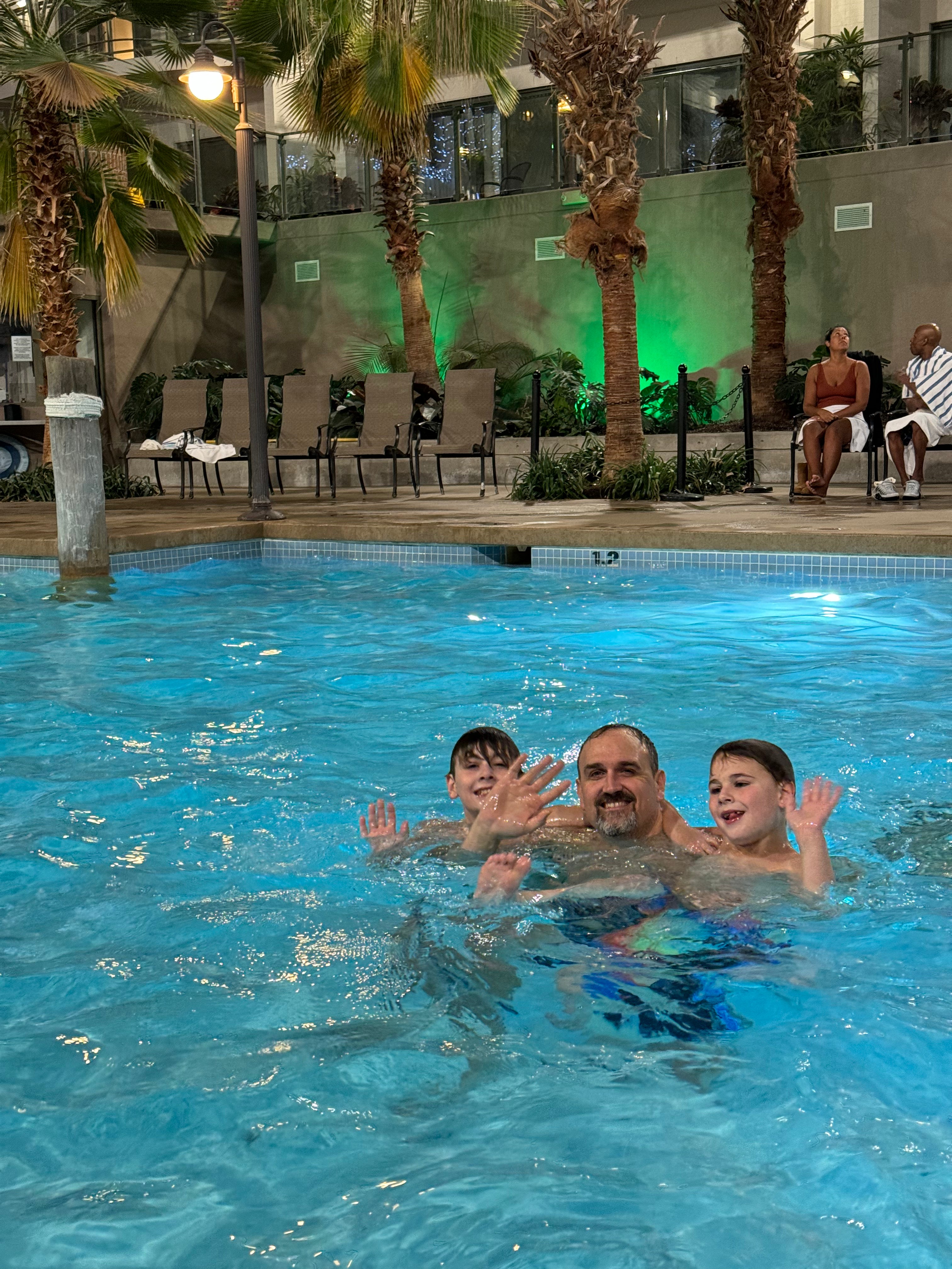 The highlight of our stay was the amazing indoor pool area. With towering palm trees, a relaxing hot tub, and a fun waterslide, it felt more like a resort than a hotel. Our kids spent hours swimming and playing, while we enjoyed lounging poolside and soaking up the warm, vacation like atmosphere. These pool days quickly became some of our favourite memories from the trip.